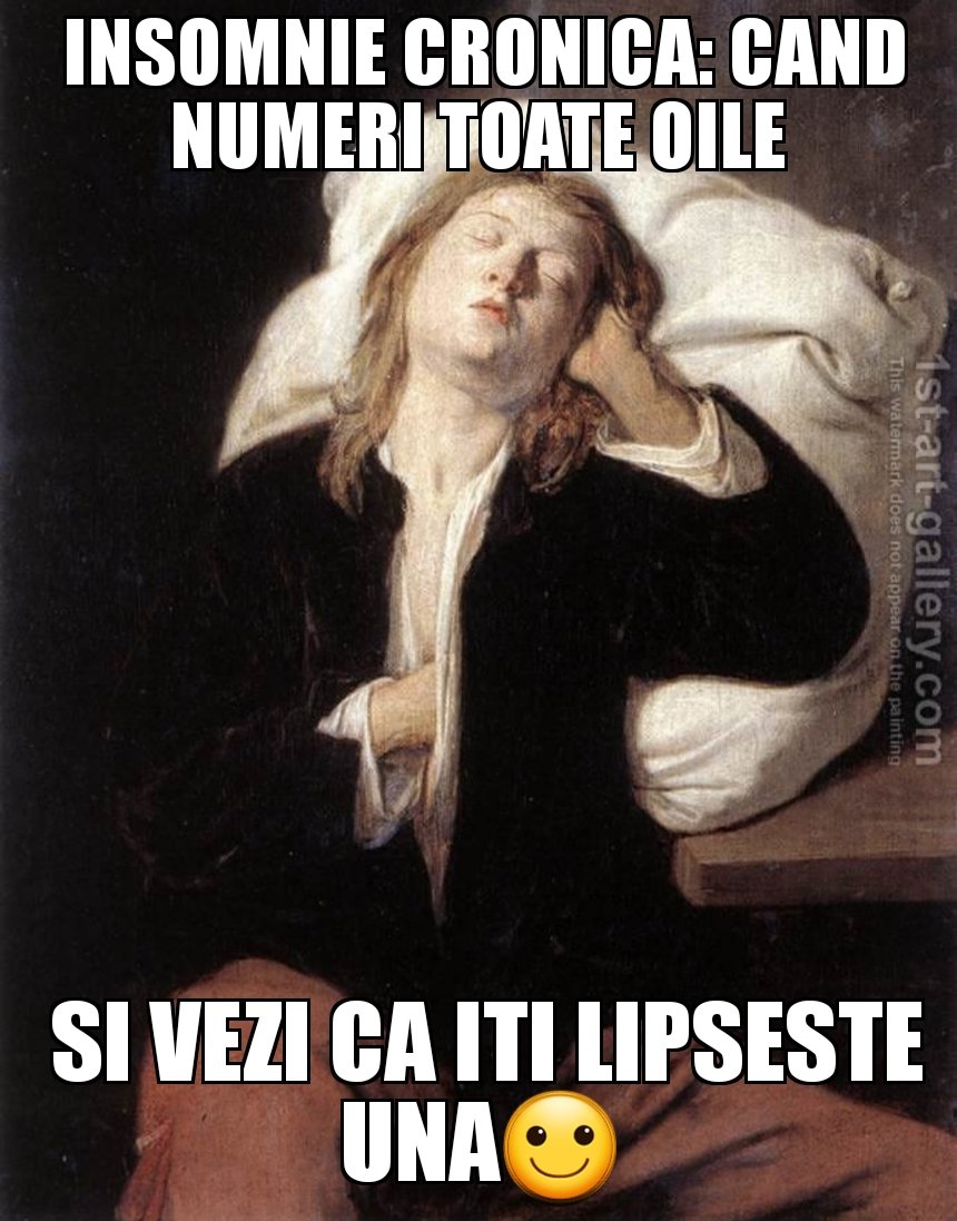 Într-o noapte în timp ce fugeam de aburitoare vise aiuritoare mi-am numărat toate oile, le-am strigat pe nume și am observat cu mare tristețe că una mai cheală șchiopăta, am fugit repede și am ascuns oaia bezmetică într-unul dintre vise dar am uitat în care și de atunci mă lupt cu insomnia .Unde-i oaia, unde-i visul, unde-i somnul? Au fugit cu toate într-o noapte.