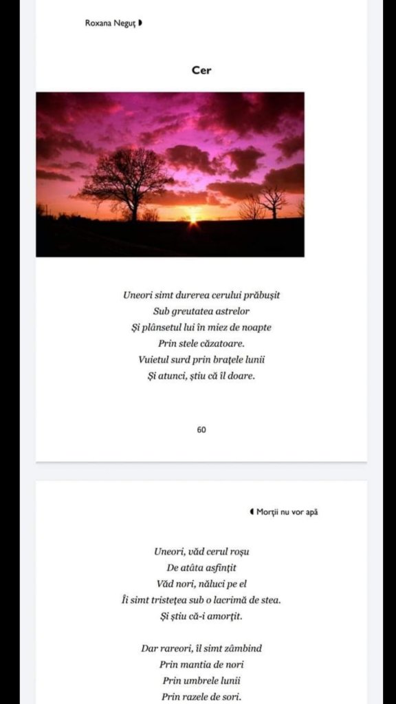 Astăzi este miercuri, avem limonada poetică. Poezia „Cer” din volumul Morții nu vor apă, editura Lumen.