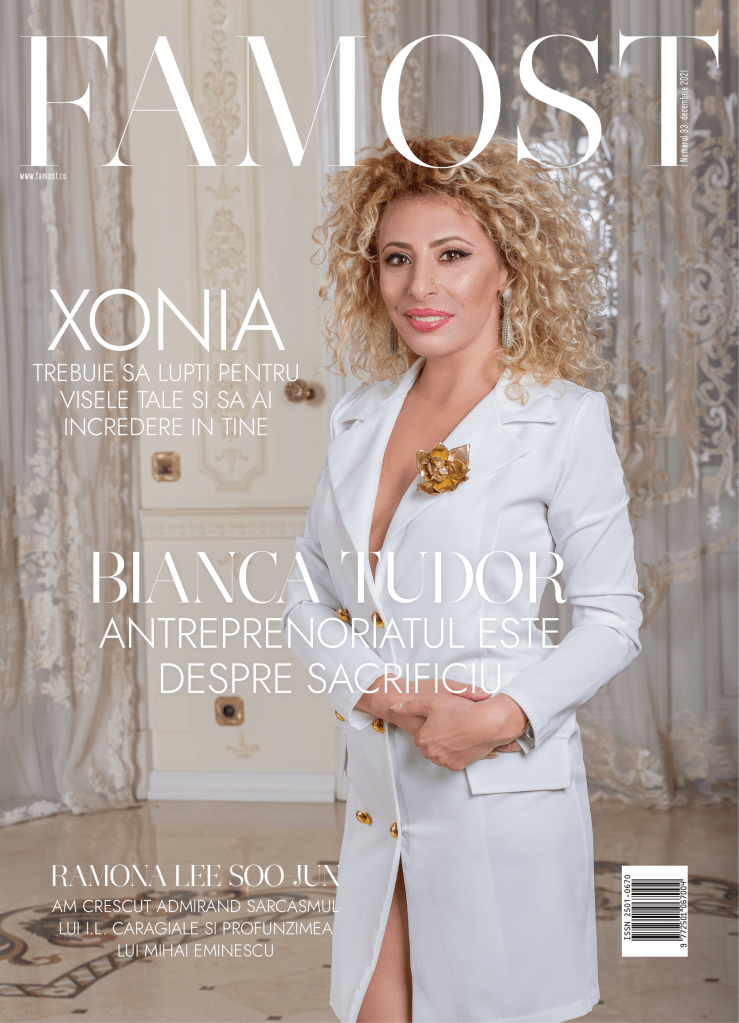 Pe coperta revistei Famost editia decembrie 2021 o avem pe antreprenoarea Bianca Tudor, o prezenta remarcabila prin prisma atitudinii si a realizarilor profesionale pana in momentul de fata. Cunoscuta cantareata australiana de origine romana – XONIA este invitata Danielei Sala in revista noastra, un dialog despre ea, ce inseamna o cariera de artist si ce sacrificii trebuiesc facute, alaturi de multe alte lucruri interesante. O prezenta la fel de exotica este si cea a scriitoarei romance Ramona Lee Soo-Jun, o tanara ambitioasa, cu multe initiative si proiecte, o performera ca scriitor; interviul la interior.