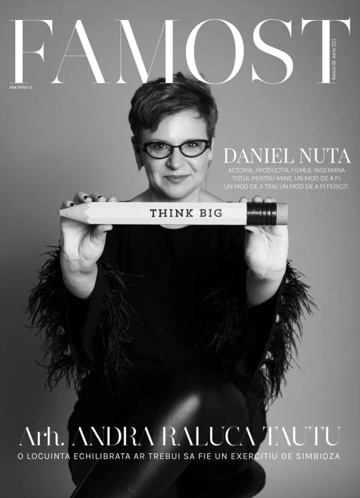 Arhitect Andra Raluca Tautu se afla pe coperta acestei editii, iar din interviul de la interior aflam lucruri utile despre aceasta frumoasa meserie, despre cariera invitatei, cine este persoana din spatele omului de business, ne actualizam cu tendintele din domeniul amenajarilor. Daniel Nuta, unul dintre cei mai valorosi actori romani la momentul actual, este invitatul special al Danielei Sala prin intermediul unui frumos interviu; aflam detalii interesante despre cariera sa, despre rolurile in care a jucat, ce inseamna sa fii actor si producator astazi. Creatoarea de moda Kinga Varga sta de vorba cu Daniela Sala si ne povesteste despre pasiunea sa pentru moda, cum au fost inceputurile carierei si cum arata filosofia creativa a acestui frumos brand.