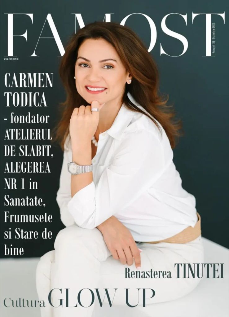 Coperta lunii octombrie 2025 a revistei Famost o are pe Carmen Todică, fondator al Atelierului de Slăbit, saloane de înfrumusețare care oferă servicii de cea mai bună calitate în ceea ce privește sănătatea și starea de bine. În interviul din interior, ea ne vorbește despre filosofia care stă în spatele unei astfel de afaceri, modul de interacțiune cu clienții, dar facem cunoștință și cu detalii din viața personală, încercând să cunoaștem și omul Carmen Todică.